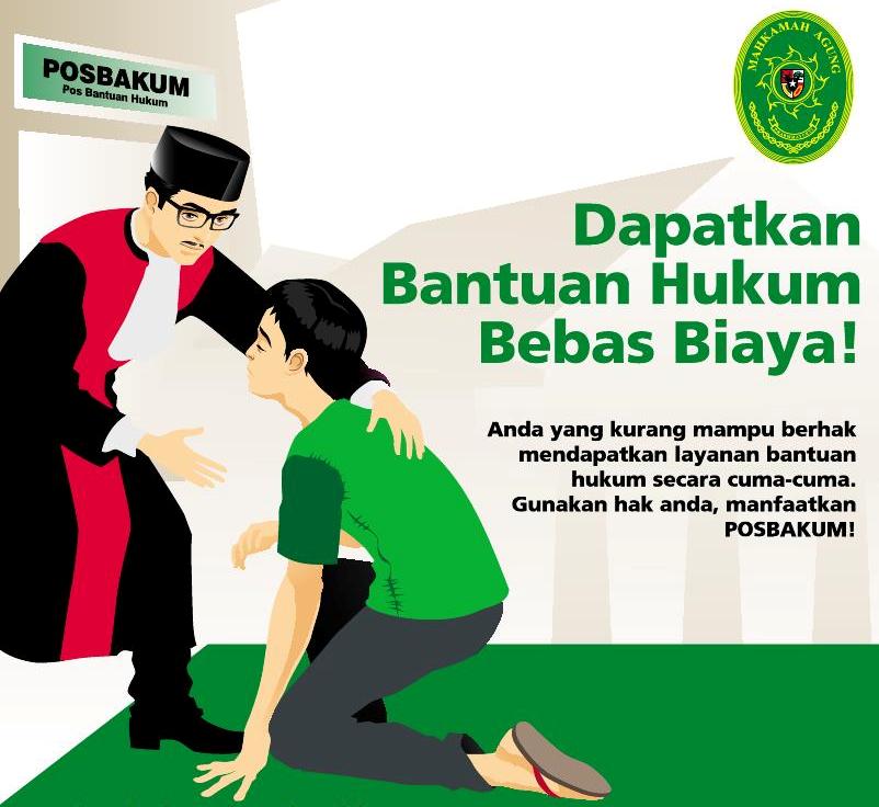Pos Bantuan Hukum (Posbakum) merupakan lembaga pemberian jasa hukum yang difasilitasi oleh negara melalui pengadilan agama, bertugas memberikan bantuan hukum secara cuma-cuma bagi masyarakat pencari keadilan yang tidak mampu. Petu...